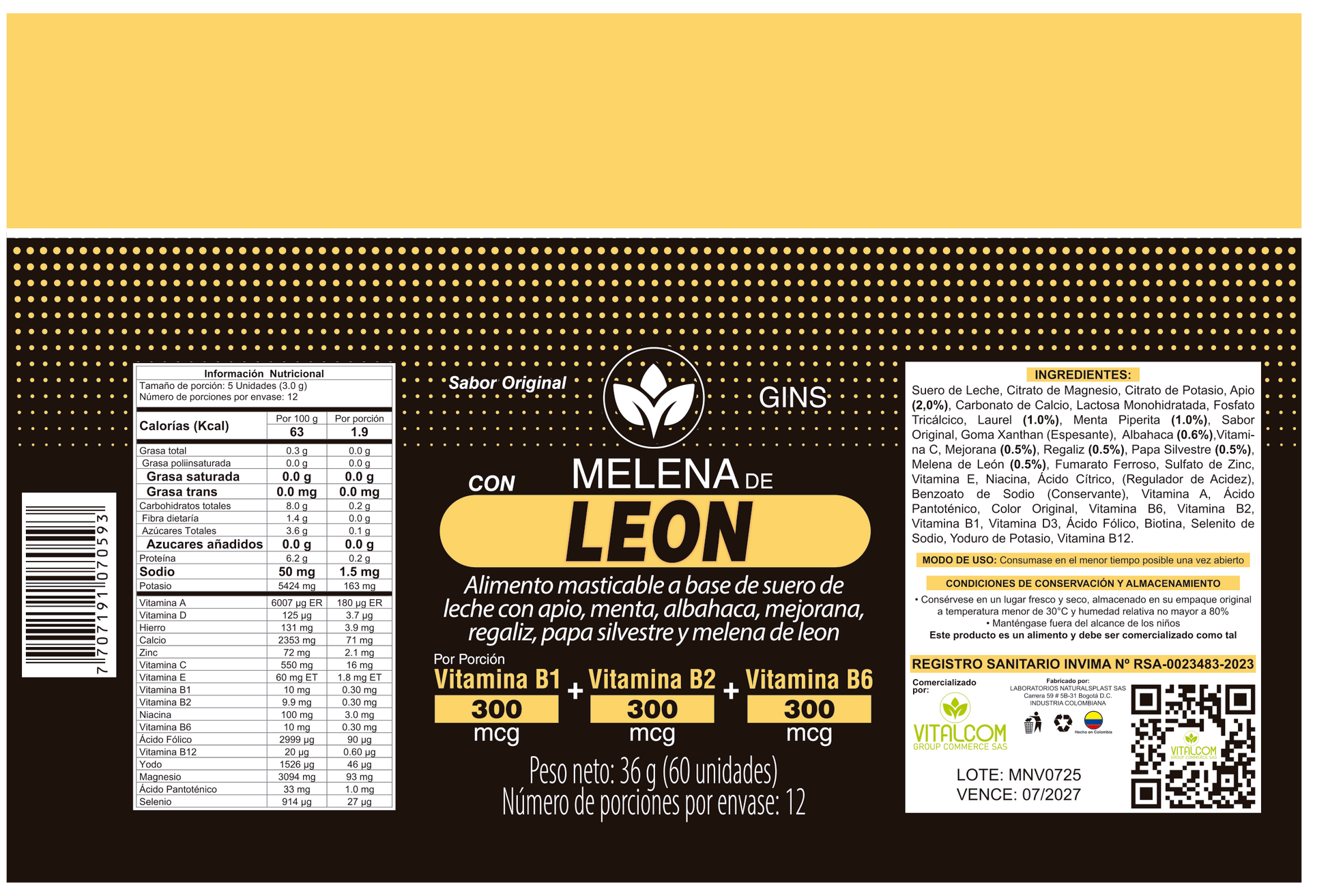 💡 Nota Vitalcom: Elaborado bajo altos estándares de calidad y seguridad, con certificación INVIMA y rigurosos controles de producción.